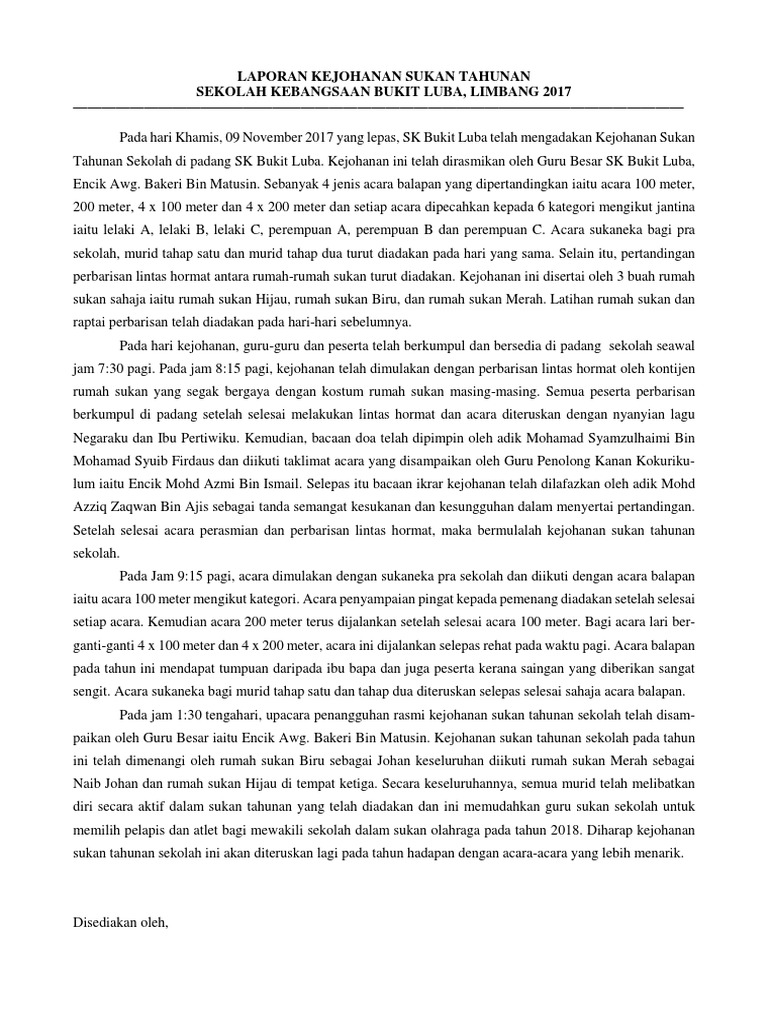 Contoh Laporan Sukan Tahunan Sekolah Pdf