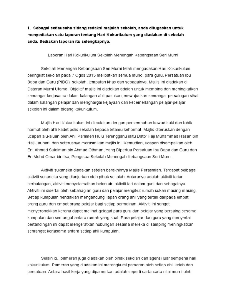 Contoh Karangan Spmlaporan Hari Kokurikulum Pdf